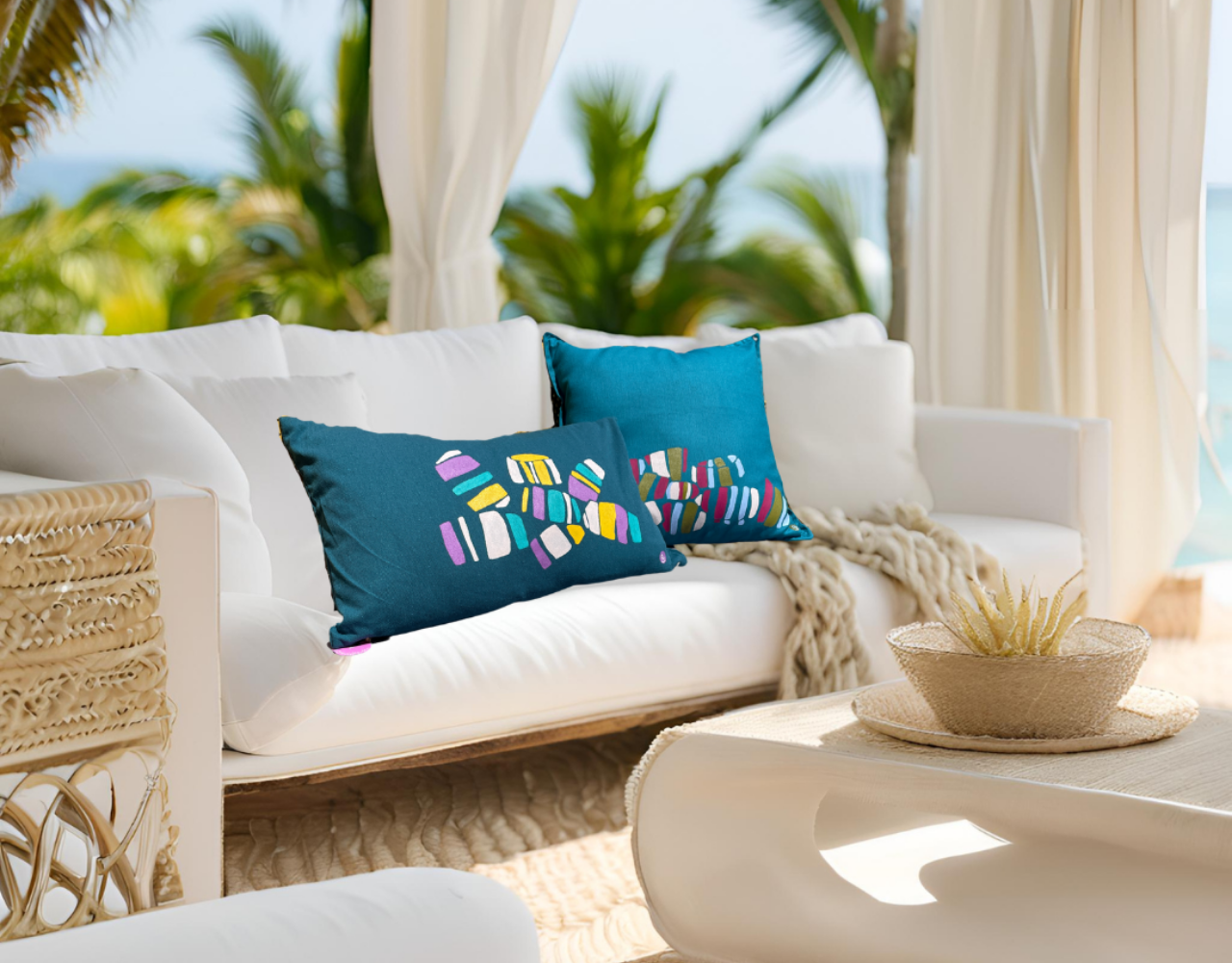 Bleu en haut, bleu en bas et entre les deux, nos chapelets d'îles. Blanc ou noir pour nos sables, vert pour les raisiniers, Or du soleil dominant. Et tous les gris sous la pluie. Nuances de couleurs qui rythment nos vies... C'est là qu'intervient Isy'a avec ses coussins, objets inspirés de notre environnement et des gens qui y vivent. Proposer une touche à la fois authentique et artistique dans la décoration d'intérieur ; c'est la volonté d'Isy'a.