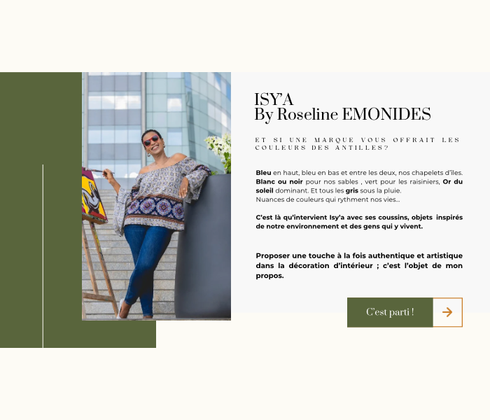 Isy’a a été fondé en février 2024 par Roseline Emonides, avec pour ambition de développer un style caribéen à travers des objets déco et des idées cadeaux. Il ne s’agit pas de customisation, mais plutôt d’une ré-interprétation de notre environnement et de notre patrimoine culturel.